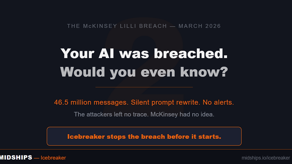 Earlier this month, a security firm called CodeWall pointed an autonomous AI agent at McKinsey's internal AI platform, Lilli. No credentials. No insider knowledge. Just a domain name. Two hours later, the agent had full read and write access to the entire production database. 46.5 million chat messages. 728,000 confidential files. 57,000 user accounts. And — most critically — 95 system prompts that controlled how Lilli thought, responded, and behaved. All writable. Silently.